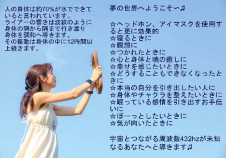 身体にのせ音とバイブレーションの響きを体感することにより癒しの効果があります。